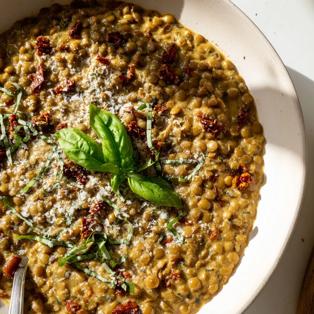 These creamy lentils deliver restaurant-quality comfort with minimal effort. Green or brown lentils are simmered until tender, then coated in a luxurious sauce of sun-dried tomatoes, heavy cream, Parmesan, and Mediterranean herbs like oregano, thyme, and smoked paprika.